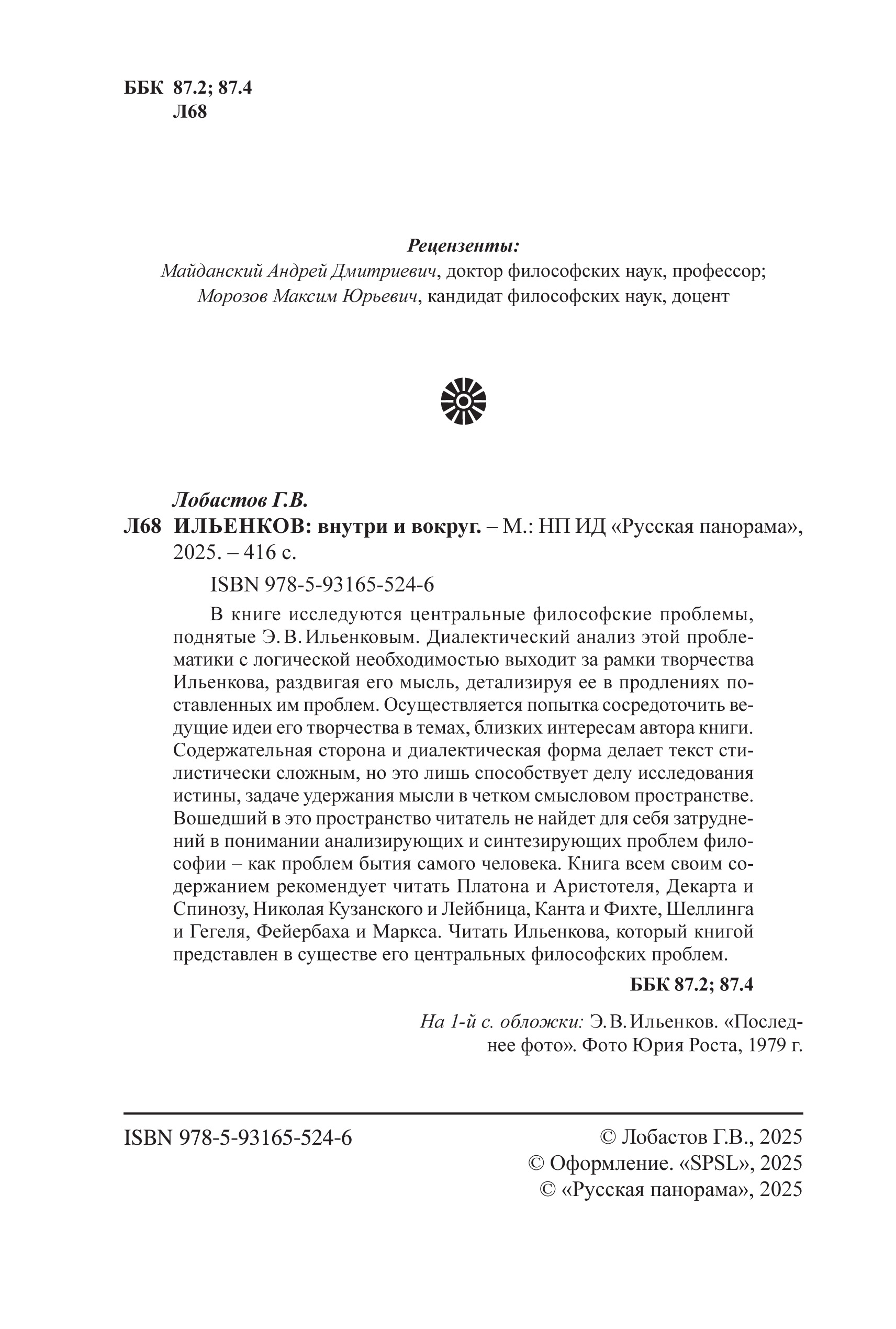 В книге исследуются центральные философские проблемы, поднятые Э. В. Ильенковым. Диалектический анализ этой проблематики с логической необходимостью выходит за рамки творчества Ильенкова, раздвигая его мысль, детализируя ее в продлениях поставленных им проблем. Осуществляется попытка сосредоточить ведущие идеи его творчества в темах, близких интересам автора книги. Содержательная сторона и диалектическая форма делает текст стилистически сложным, но это лишь способствует делу исследования истины, задаче удержания мысли в четком смысловом пространстве. Вошедший в это пространство читатель не найдет для себя затруднений в понимании анализирующих и синтезирующих проблем философии – как проблем бытия самого человека. Книга всем своим содержанием рекомендует читать Платона и Аристотеля, Декарта и Спинозу, Николая Кузанского и Лейбница, Канта и Фихте, Шеллинга и Гегеля, Фейербаха и Маркса. Читать Ильенкова, который книгой представлен в существе его центральных философских проблем.